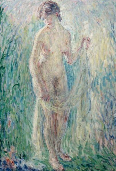 Standing nude, yellow dress