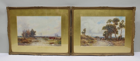 | A pair of rural scenes, a figure driving sheep and geese, Eventide and a logging team return home | |