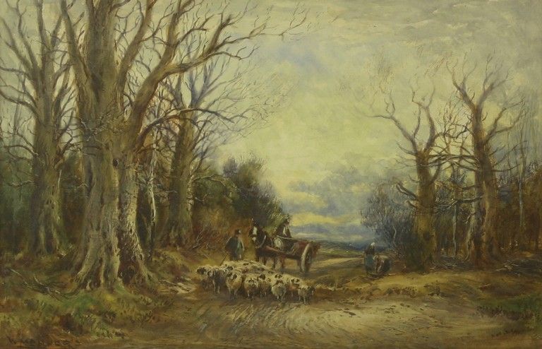 | FIGURES WITH A HORSE AND CART AND SHEEP ON A COUNTRY LANE | |