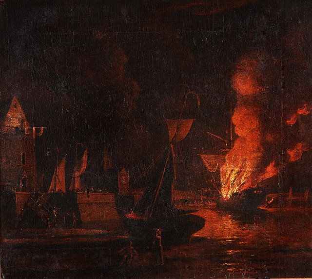 A ship on fire