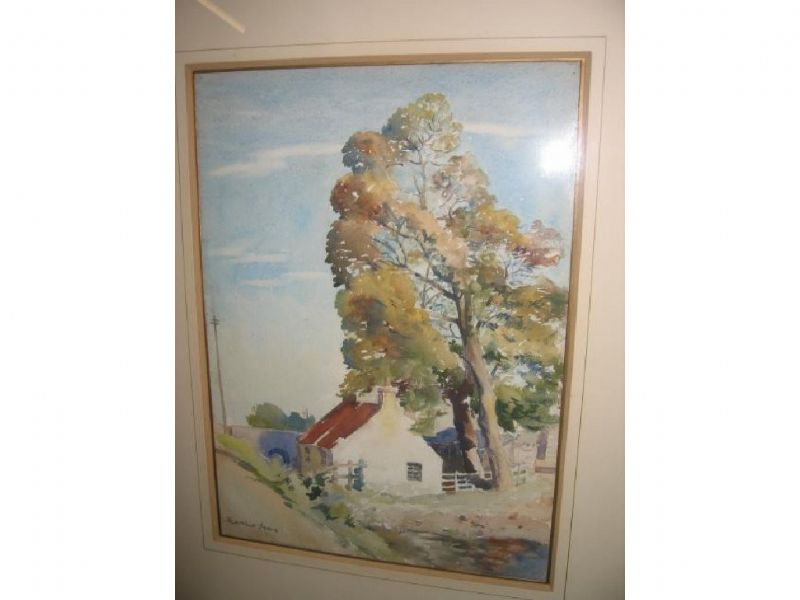 | Watercolor and pencil, signed and inscribed on a partially fragmented label on the backboard | |