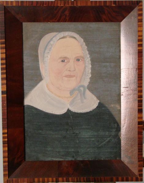 | Pair of half-length portraits of an elderly coupl Man in a black jacket with white shirt. Woman in a black dress with white lace | |