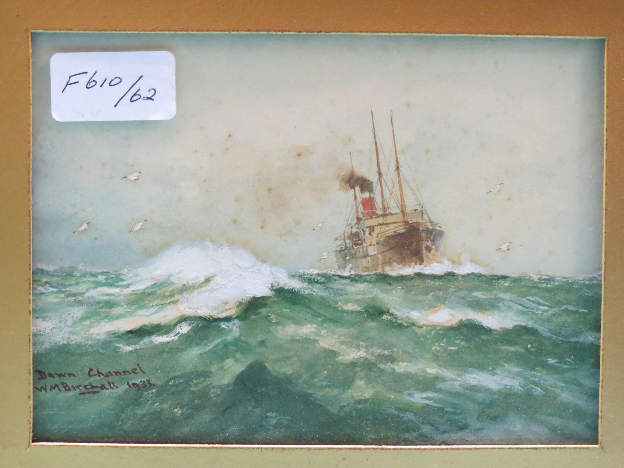 | steam yacht on rough seas entitled Down Channel | |