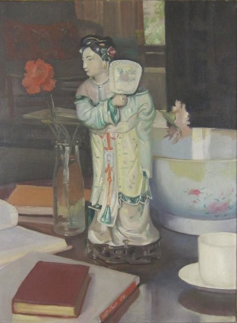 | A Still Life with an oriental porcelain figure and bowl on a table, in a room interior, recto; a portrait sketch of a Lady verso | |
