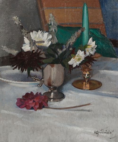 STILL LIFE WITH FLOWERS AND A CANDLE