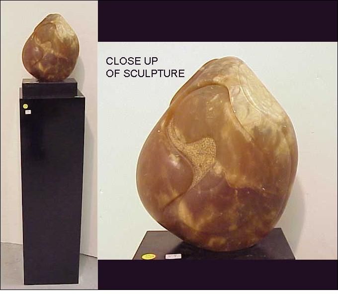 | abstract form with polished stone surrounding rough stone in center on two sides | |