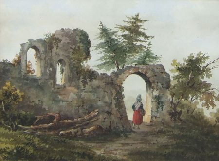Figure by a Ruined Building