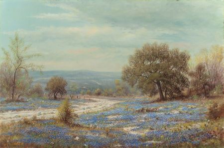 Winding Country Road with Bluebonnets