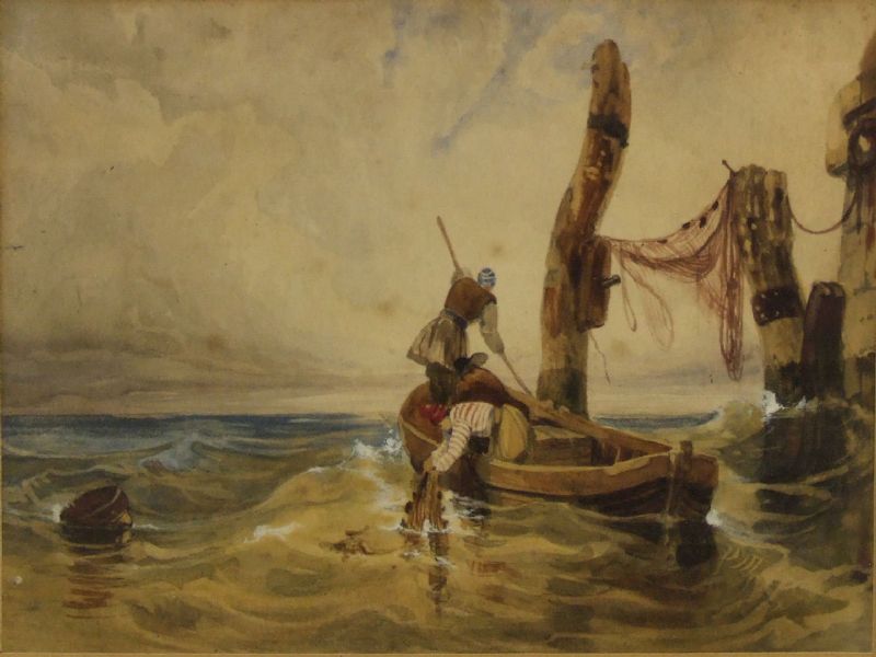 Seascape with fishermen in boats