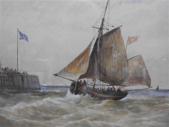 Sailing ship coming into harbour
