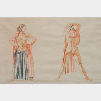 Sir William Russell Flint (English 1880-1969)- ''Two Studies of A Model''- colored graphite on paper, 1929, signed W. Russell Flint lower right in pencil, window from mat. 8 x 13 1/4'' | |