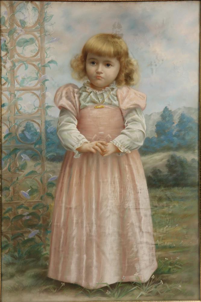 Life-Sized Portrait of a Young Blonde Girl in a Pink Dress