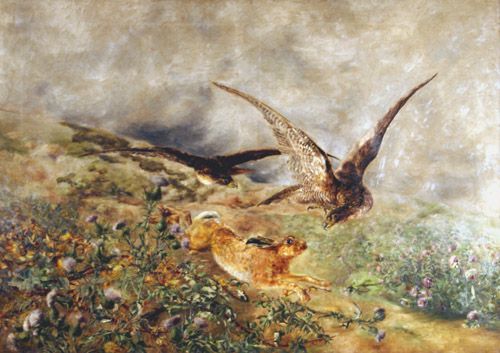 Study of Two Buzzards pursuing a Hare
