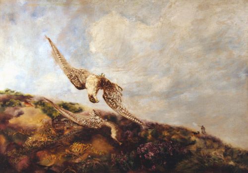 Study of Two Fallen Buzzards, a Huntsman beyond
