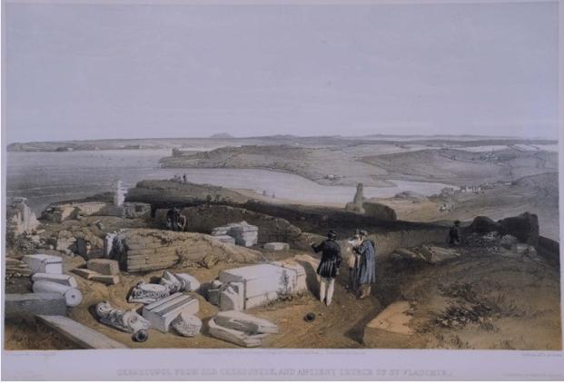 | Sebastopol from old Chersonese, an ancient church of St. Vladimir | |