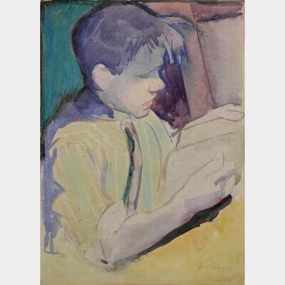 Edwin, Reading- watercolor and graphite on paper, signed Wm Sommer lower right. 9 3/4 x 7'' Provenance: Robert MIller Gallery, New York, NY 1985 | |