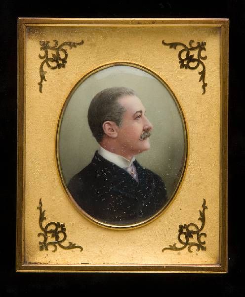 | A Gentleman, profile to the right, wearing black coat, white chemise and lilac cravat with stick pin | |
