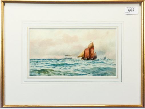 Coastal scene with a sailing ship sailing close to a paddle steamer