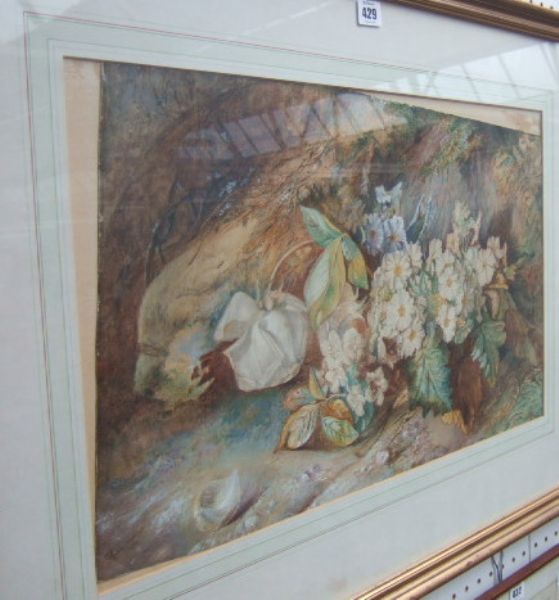 Still life of flowers on a mossy bank