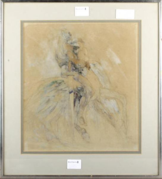 Warrior and maiden on horseback