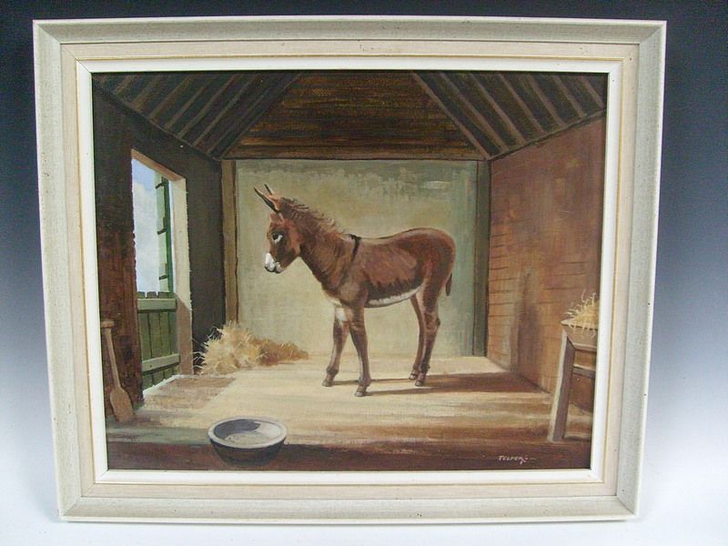 Scallywag , portrait of a donkey in a stable