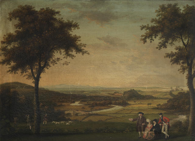 | An extensive landscape, said to be Wyreside in Lancashire, with a family said to be the Fentons, conversing in the foreground | |