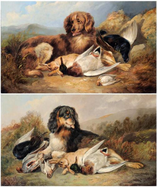Liver spaniel with the days bag