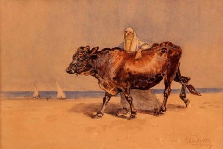 Veiled Lady with Bull on a Beach