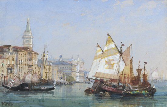 Gondoles et Bragossi sur le bassin de Saint Marc, Venise