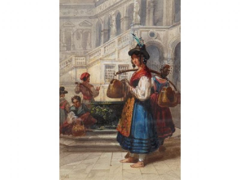 The water carrier in an Italian town square