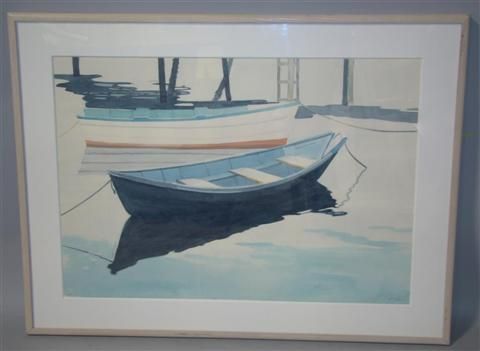 TWO SKIFFS ANCHORED