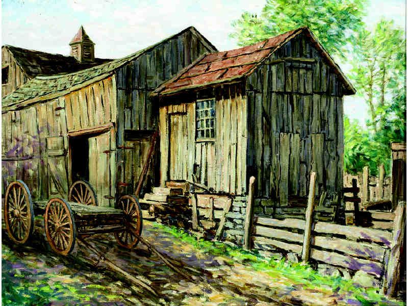 BARN SCENE WITH WAGON