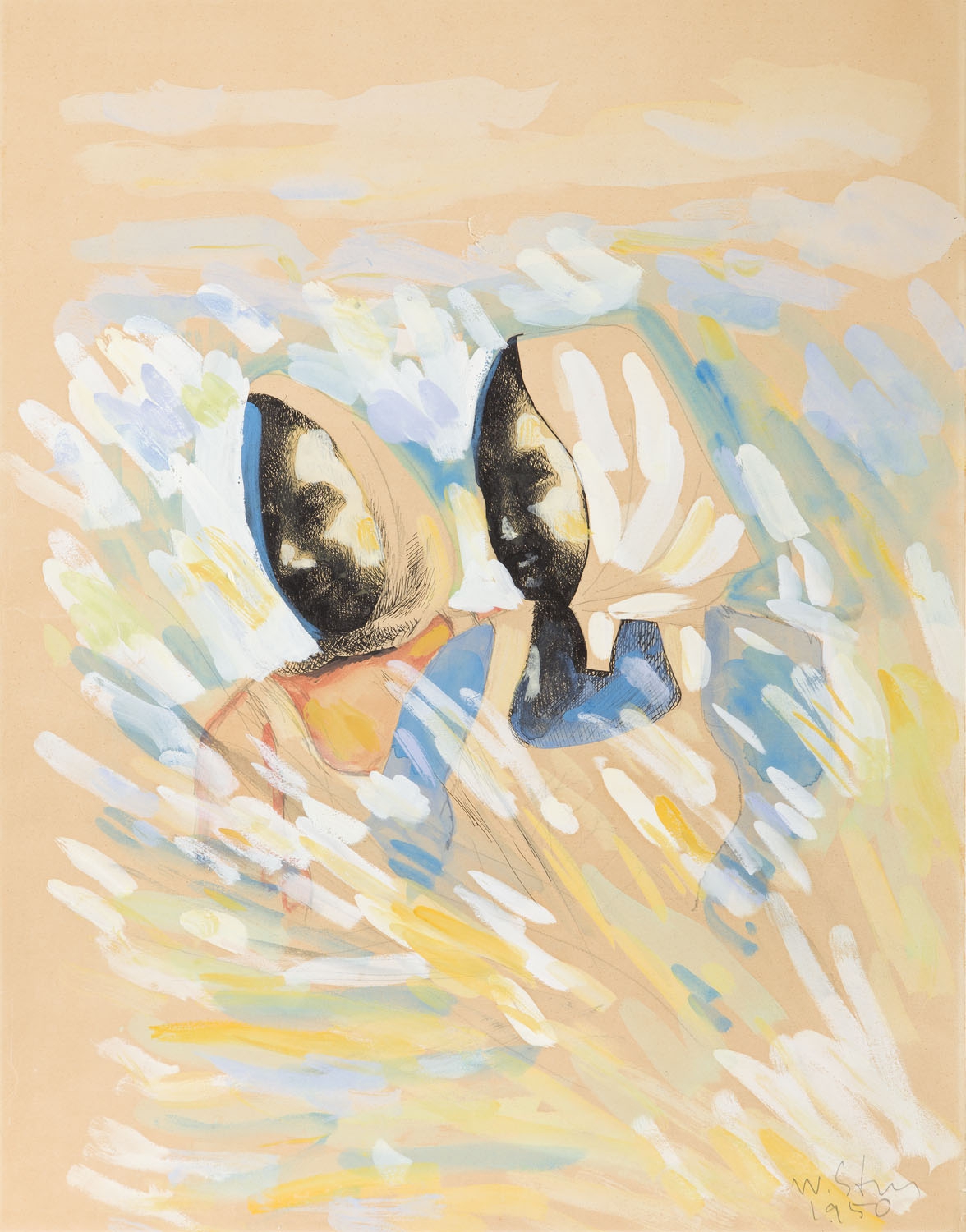 | Watercolor pen, gouache, crayon, pencil on paper | |