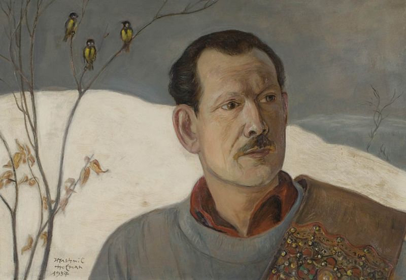 PORTRET MĘŻCZYZNY Z SIKORKAMI