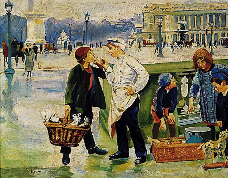 Pariser Straßenszene mit spielenden und rauchenden Kindern