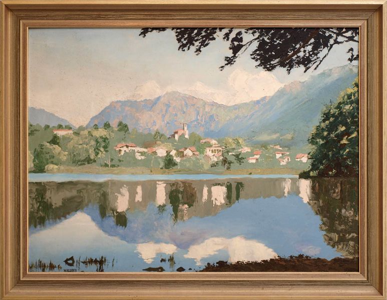 Blick auf den Origliosee bei Lugano im Morgenlicht