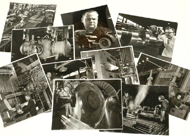 | Group of 14 photographs of men and machinery at Vickers Ruwolt, Burnley, Victoria | |