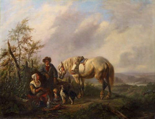 LANDSCAPE WITH RESTING PEASANT FAMILY AND A HORSE