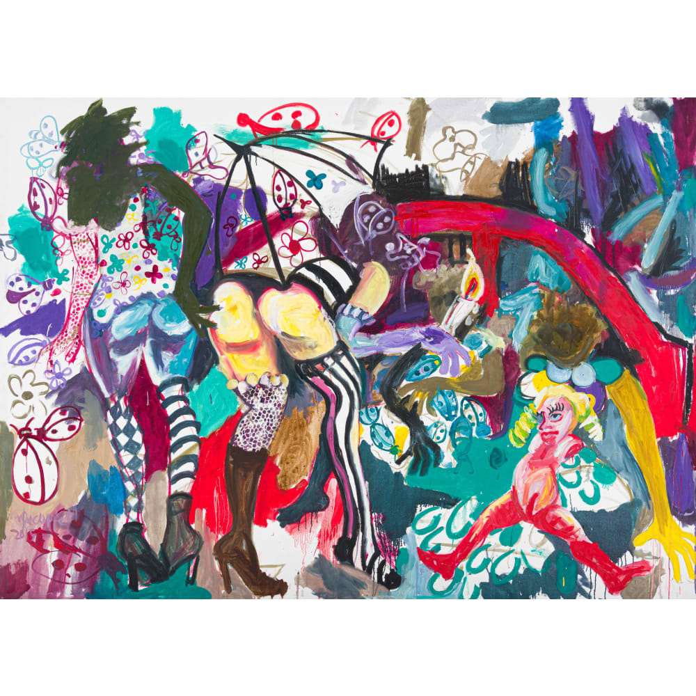 | Oil and ink on canvas | |