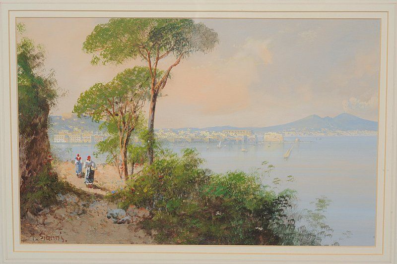 | Italian coastal scene with figures, the Bay of Naples with Vesuvius in the distance | |