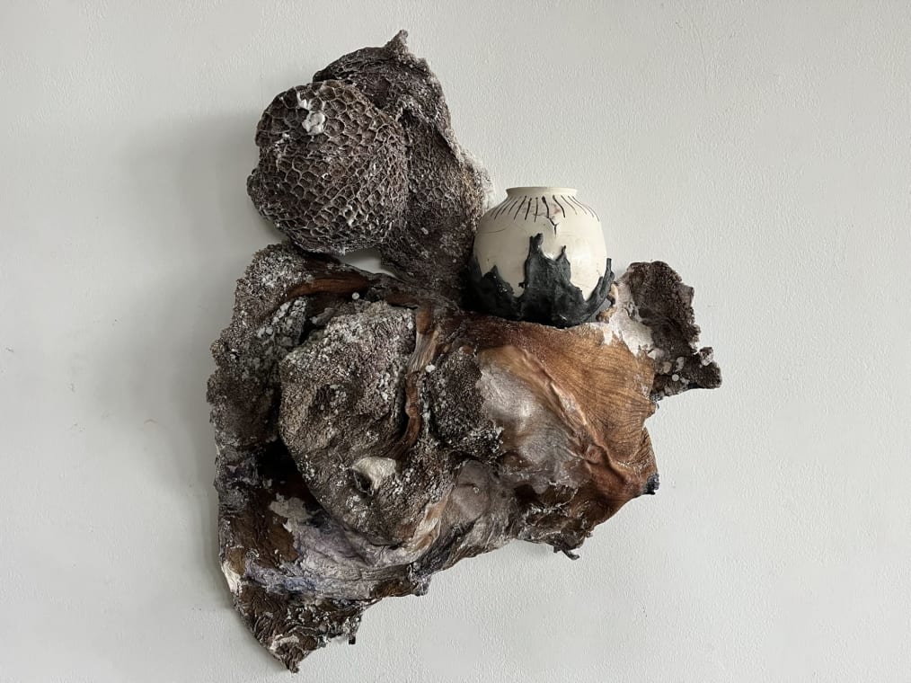 | Porcelain , iron oxide, heel, salted cow stomach, resin | |