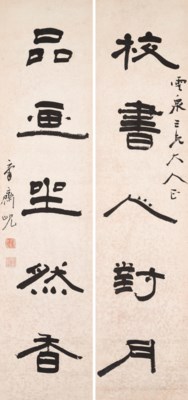 | Five-character Calligraphic Couplet in Clerical Script | |