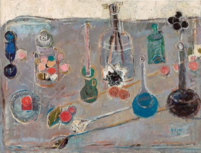 Stillleben mit Gefäßen,Vase und Früchten