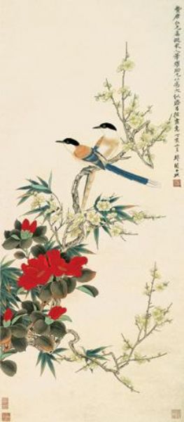 | TWO BIRDS ON A FLOWERING BRANCH | |