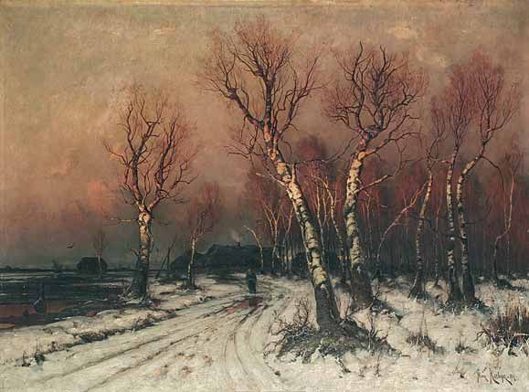 | Winterlicher Sonnenuntergang mit Bauerngehöft. | |