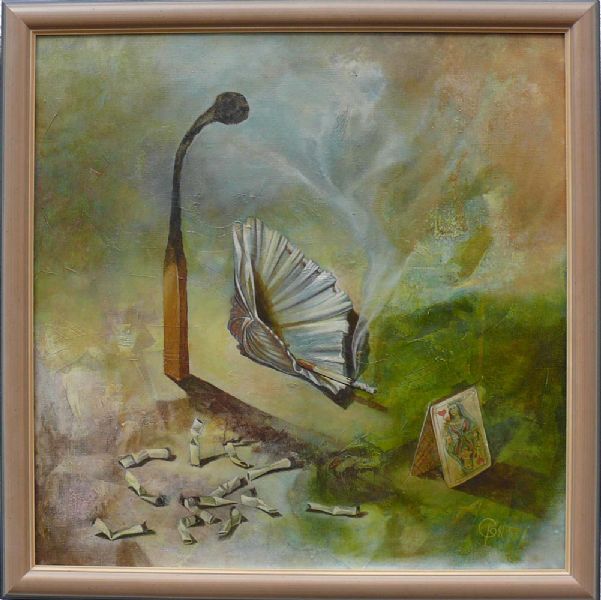 ''Stillleben'' mit Zigarette in Muschel und Kartenspiel