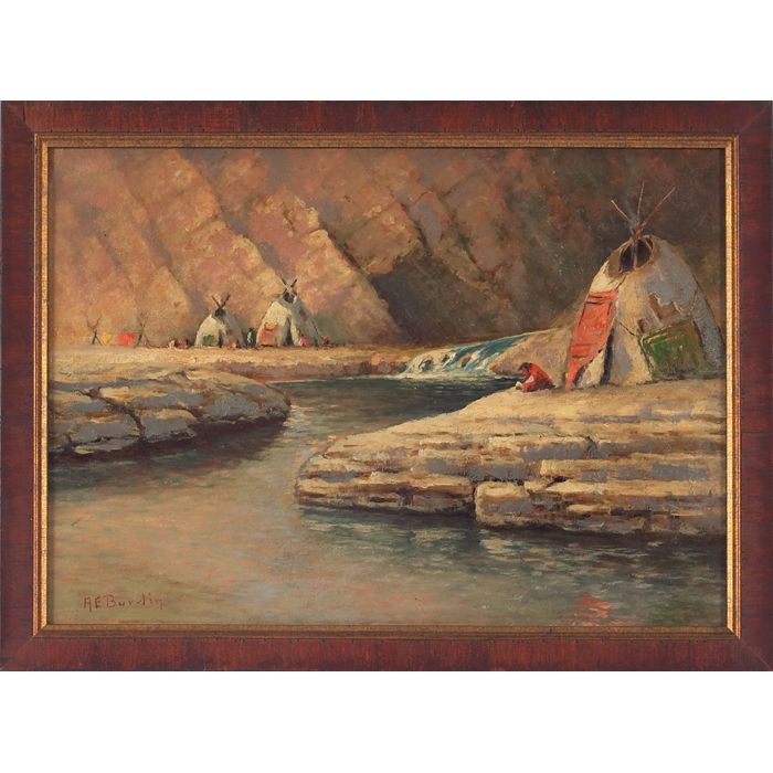 A E Burdin ( 1900 - ) is an American painter. A E Burdin s works have been auctioned off multiple times, with realized prices varying according to the size and medium of the artwork, for instance of 1150 USD for Landscape featuring trees along a country lane in 2005