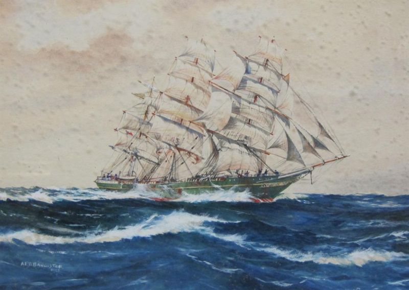 A F D Bannister ( 1900 - ) is a painter. A F D Bannister s works have been put up for auction numerous times, with realized prices varying from 45.79 USD for A clipper in full sail in 2005 to 63.93 USD for H.M.S. Repulse entering Portsmouth Harbour in 2007 , based on the size and medium of the artwork.