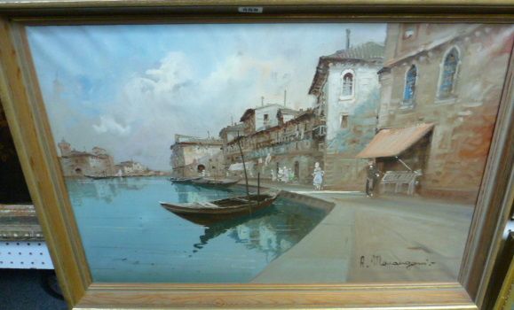 A Marangoni ( 1900 - ) is a painter. A Marangoni s works have been put up for auction numerous times, with realized prices varying from 24.47 USD for A Venetian quayside in 2011 to 62.22 USD for Scorcio veneziano in 2013 , based on the size and medium of the artwork.