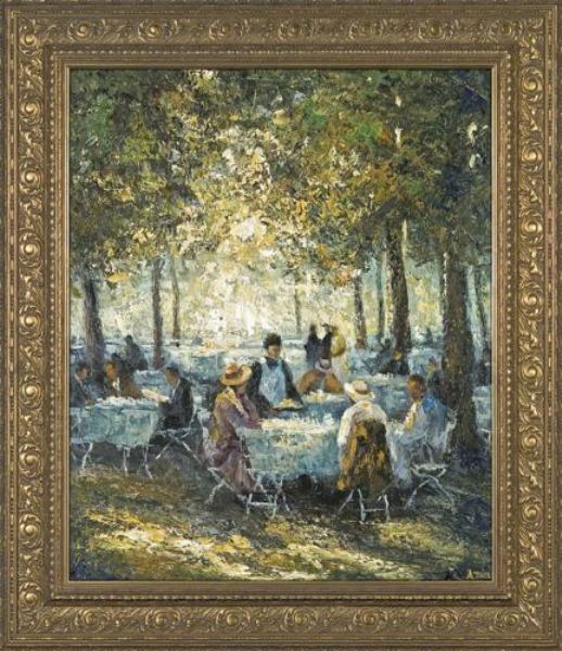 Alexander Thiele ( 1924 - ) is a German painter. Alexander Thiele s works have been put up for auction numerous times, with realized prices surpassing estimated prices, varying from 323.94 USD for Münchner Biergarten in 2004 to 1241.52 USD for ABENDGESELLSCHAFT in 2005 , based on the size and medium of the artwork.